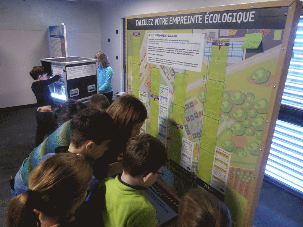 14 modules interactifs permettent au visiteur de calculer son empreinte écologique, de manipuler un générateur d’électricité, de comparer divers matériaux isolants, d’observer le mécanisme de l’effet de serre, etc.